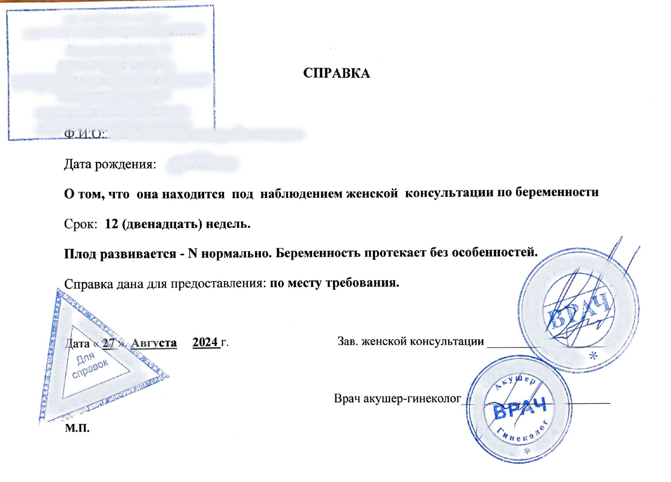 Справка от гинеколога